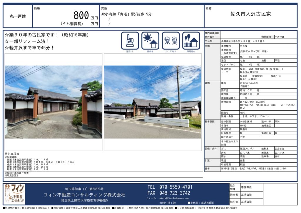 佐久市入沢古民家 800万円